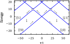 Abstract: We investigate the influence of a dipole interaction with a classical radiation field on a qubit during a continuous change of a control parameter. In particular, we explore the non-adiabatic transitions that occur when the qubit is swept with linear speed through resonances with the time-dependent interaction. Two classic problems come together in this model: the Landau-Zener (LZ) and the Rabi problem. The probability of LZ transitions now depends sensitively on the amplitude, the frequency and the phase of the Rabi interaction. The influence of the static phase turns out to be particularly strong, since this parameter controls the time-reversal symmetry of the Hamiltonian. In the limits of large and small frequencies, analytical results obtained within a rotating-wave approximation compare favourably with a numerically exact solution. We discuss physical realizations in microwave optics, quantum dots and molecular nanomagnets.